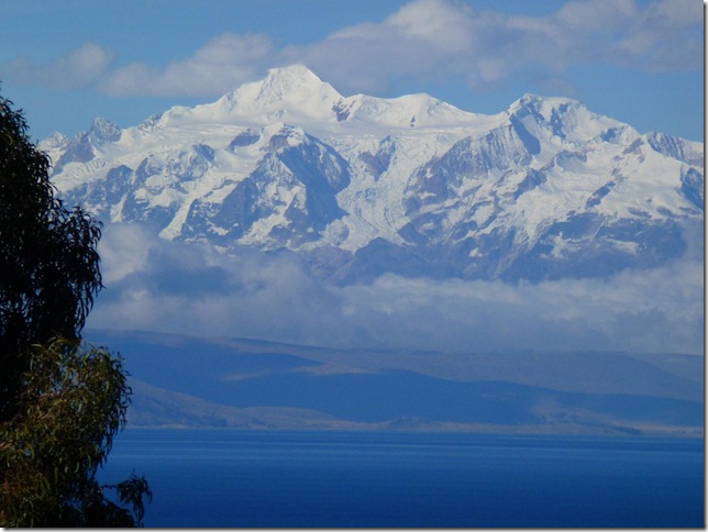 Le sentier inca longe la crête de l’île. D’en haut, on a une superbe vue sur toute la cordillera real bolivienne, les sommets enneigés, la surface lisse du lac Titicaca. Pas un souffle de travers. Le soleil tape au-dessus de nous, il fait peut-être bien 25°c au soleil. Nous suivons le sentier pendant 2h30 avant de rejoindre Yumani.